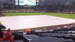 [앵커] 프로야구 한화와 삼성의 플레이오프 1차전이 잠시 후 열릴 예정인데요. 대전에 비 소식이 있다고 합니다. 현장 상황 어떤지 취재기자 연결해 들어보겠습니다. 조한대 기자, 전해주시죠. [기자] 네, 저는 지금 대전 한화생명 볼파크에 나와 있습니다. 원래 잠시 뒤면 이곳에서 한화와 삼성의 플레이오프 1차전이 열릴 예정이었는데요. 지금 이곳엔 보시는 것처럼 많은 비가 쏟아지고 있습니다. 그라운드엔 방수포까지 덮혀져, 경기 개최가 불투명한...